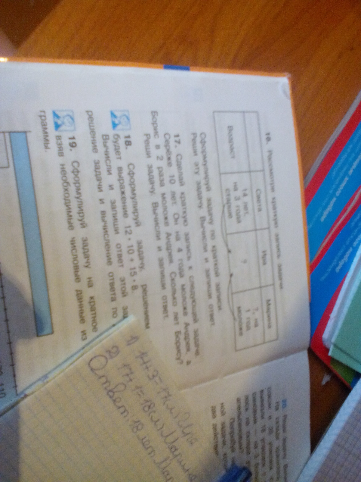 сделай краткую запись к следующей задаче Сереже 10 лет Он на 4 года моложе Андрея Борис два раза моложе Андрея Сколько лет Борису решить задачу Вычисли и запиши ответ пожалуйста помогите решить не могу туплю уже полчаса