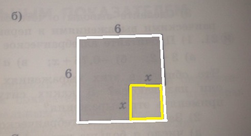 S=S(большого квадрата)-s(малого квадрата)=6·6-х·х=36-х²