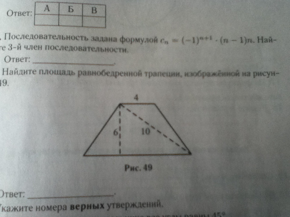 Sabcd = (AD + BC)/2 · BH = (12 + 4)/2 · 6 = 8 · 6 = 48