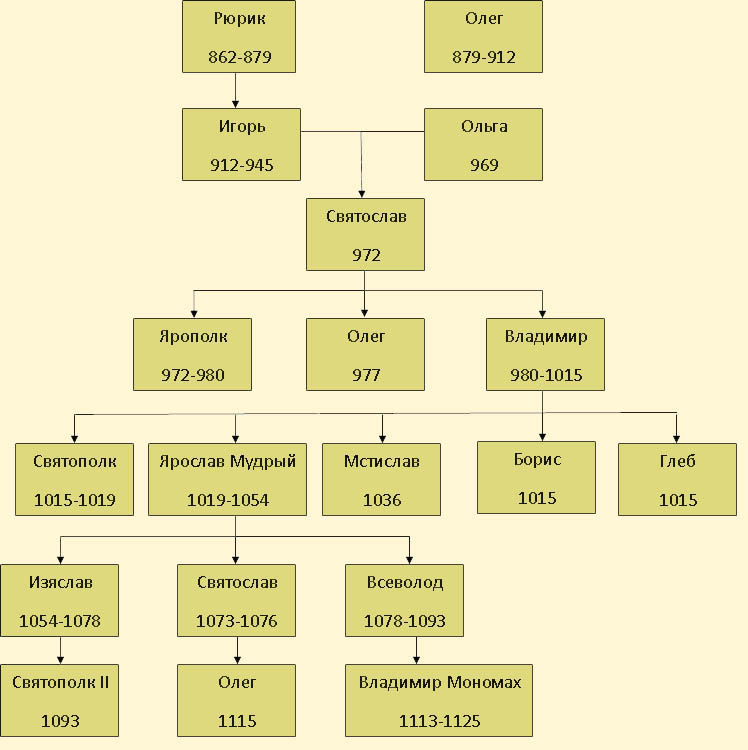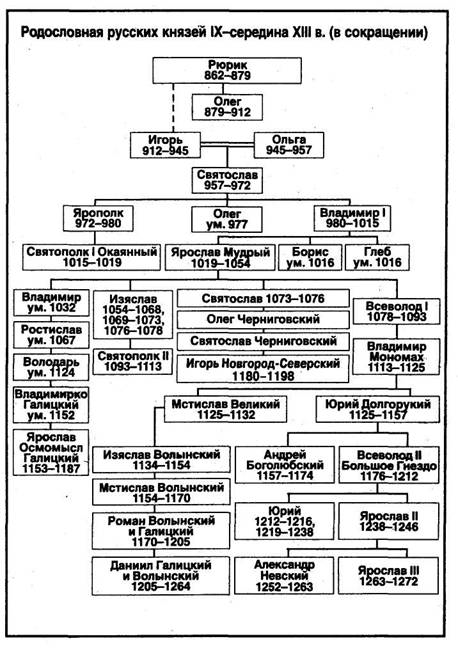 нужна родословная русских князей ,начиная от Рюрика и кончая Даниилом Московским. желательно в виде схемы