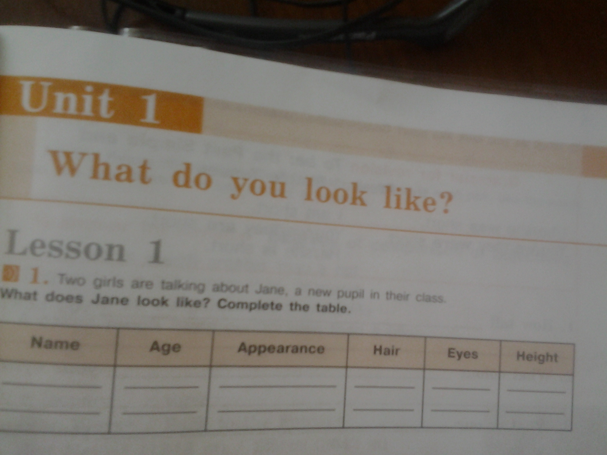 TWO girls are talking about jane a new pupil in their class. What dots jane look like? Complete the table