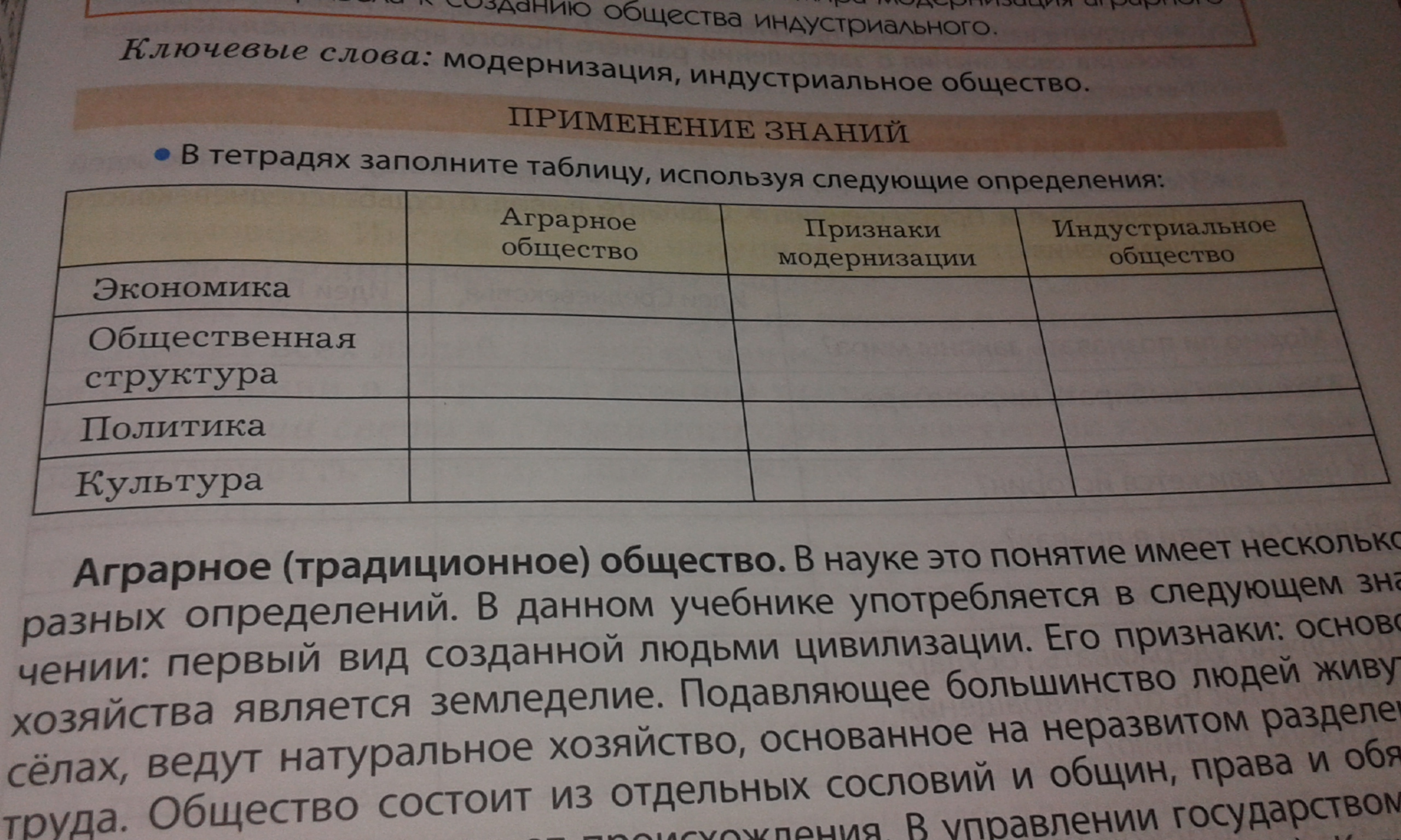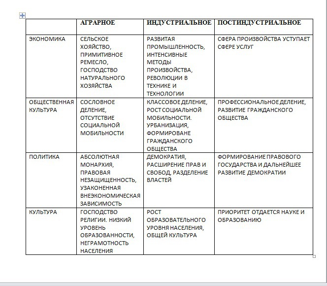 Держи) Можешь написать просто коротко, в табл расписано более подробно, все кроме признаков модернизации правда