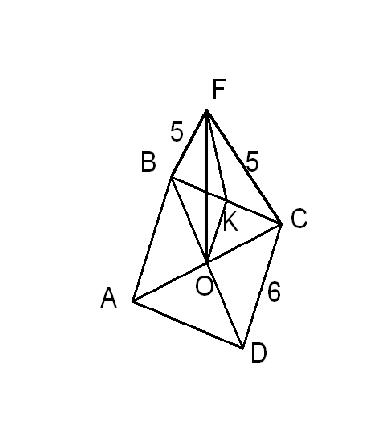 Через центр О квадрата ABCD проведен перпендикуляр OF к плоскости квадрата. Найдите угол между плоскостями BCF и ABCD, если FB=5, BC=6