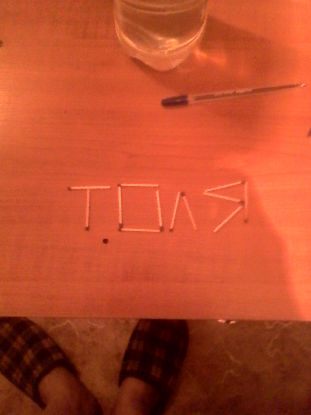 У "Т" взять верхнюю спичку, и положить между "Т" и "О". Получится ЮЛЯ.