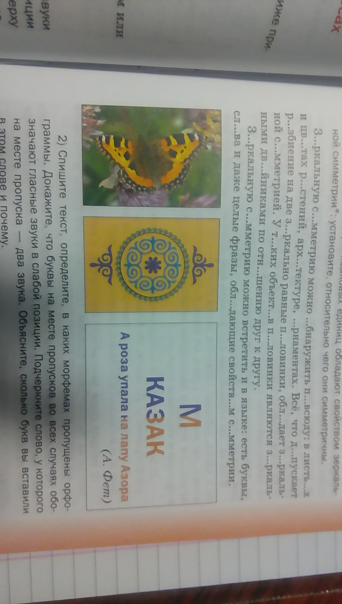 Зеркальную (зЕркало) симметрию можно обнаружить повсюду: в листьях (листьЯми) и цветах (цвЕт) растений,архитектуре,орнаментах.Всё,что допускает (дОпуск) разбиение на две зеркальные половинки,обладает зеркальной симметрией.У таких объектов половинки являются зеркальными двойниками (двОйка) по отношению (отнОсится) друг к другу.