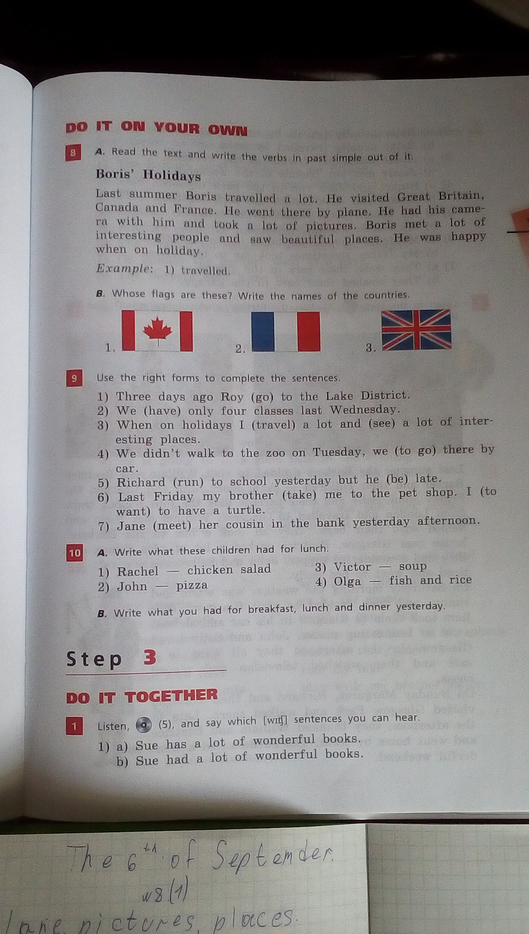 3) traveled, saw