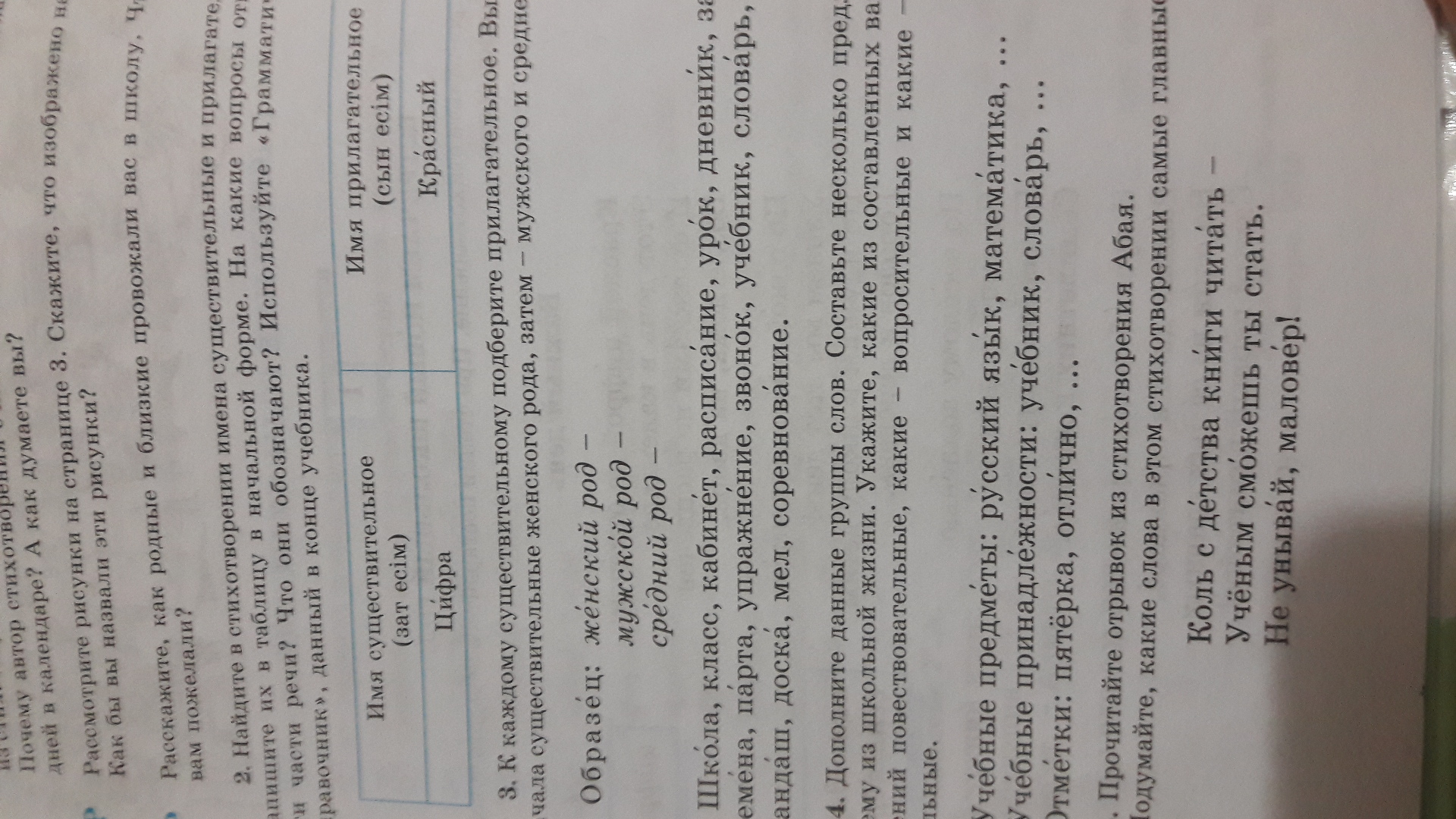 к каждому существительному подберите прилагательное. впишите сначала существительному женского рода , затем -мужского и среднего рода.
