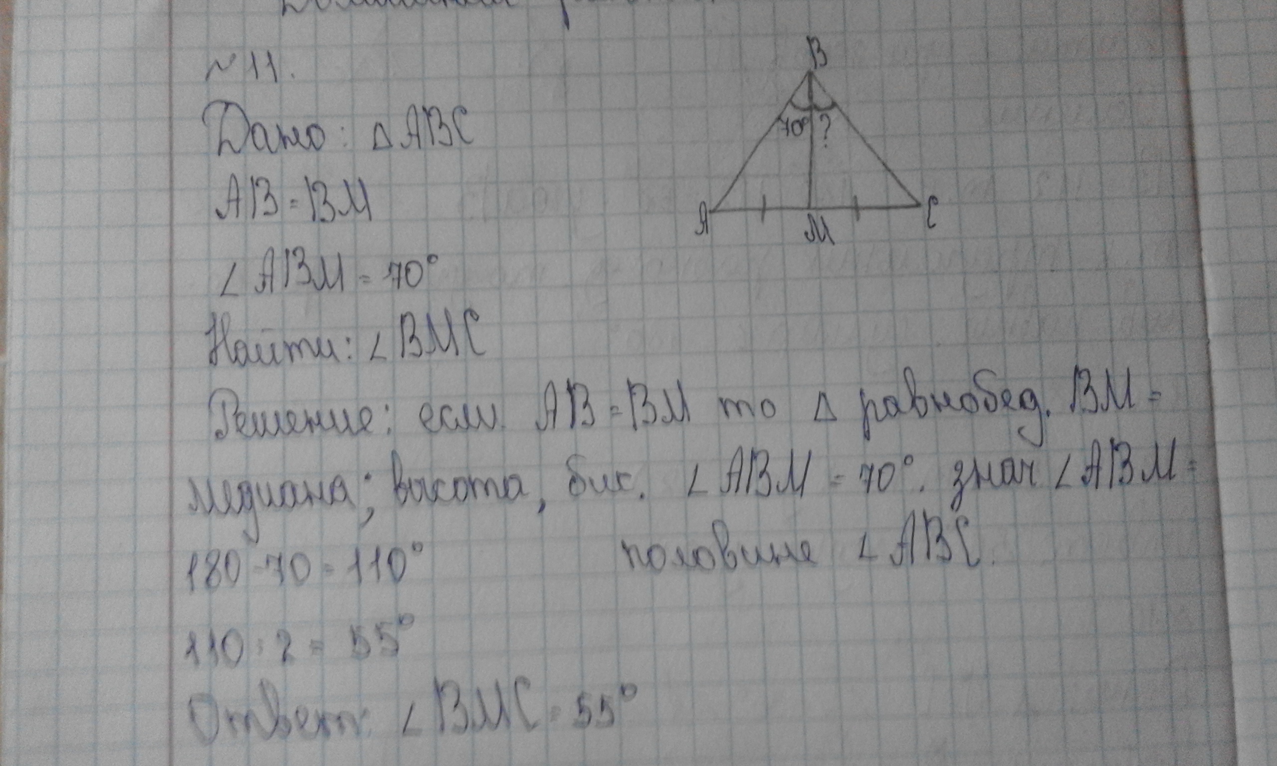 Извините забыла последнее действие 180 - 55= 125 градусов это и будет угол ВМС