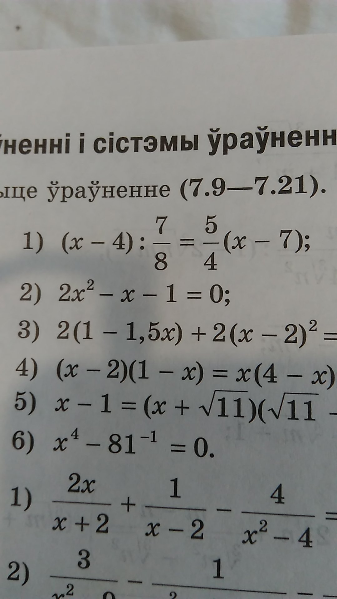 1) (х - 4) : 7/8 = 5/4 * (х - 7)