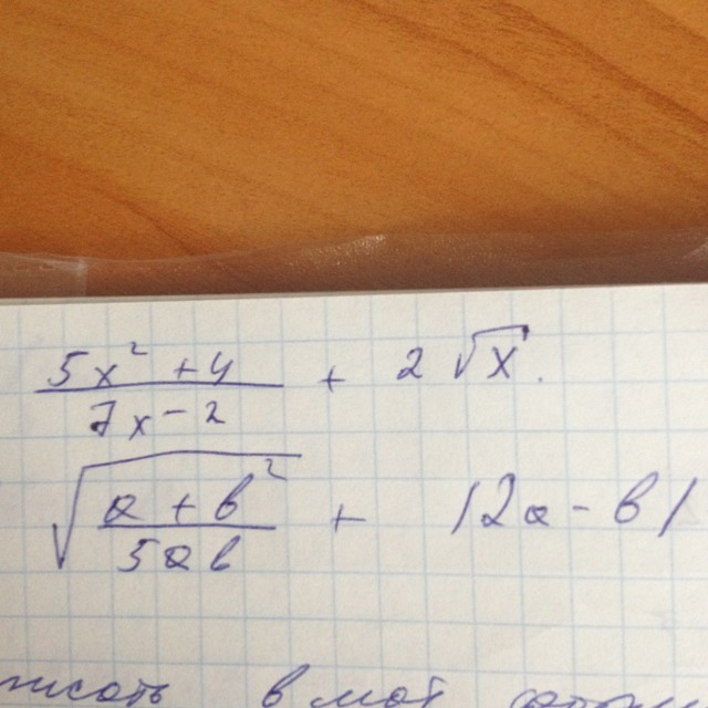 (5*sqr(x)+4)/(7*x-2)++2*sqrt(x)sqrt((a+sqr(b))/(5*a*b))+abs(2*a-b)