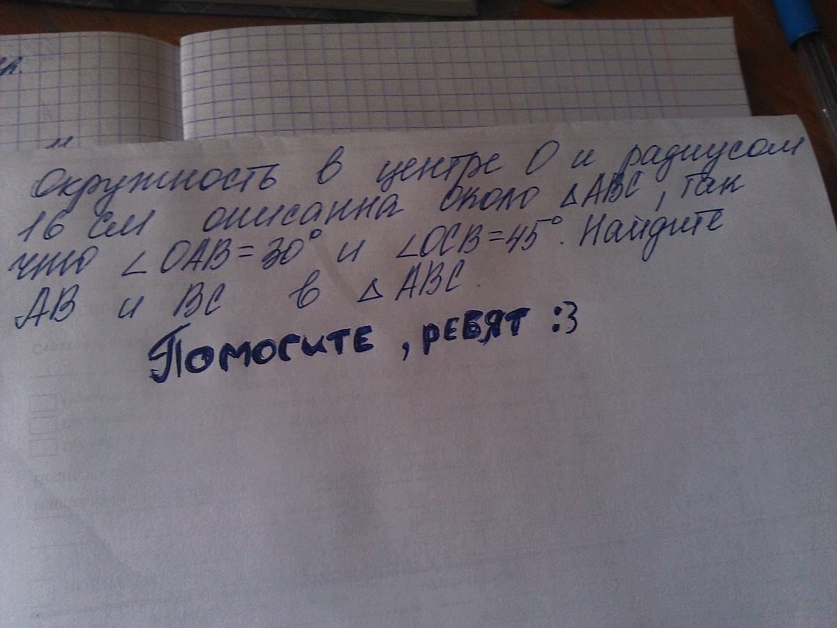 КС = ОС х cos45 = 16 х корень2/2=8 х корень2, ВС = 2 х КС = 16 х корень2