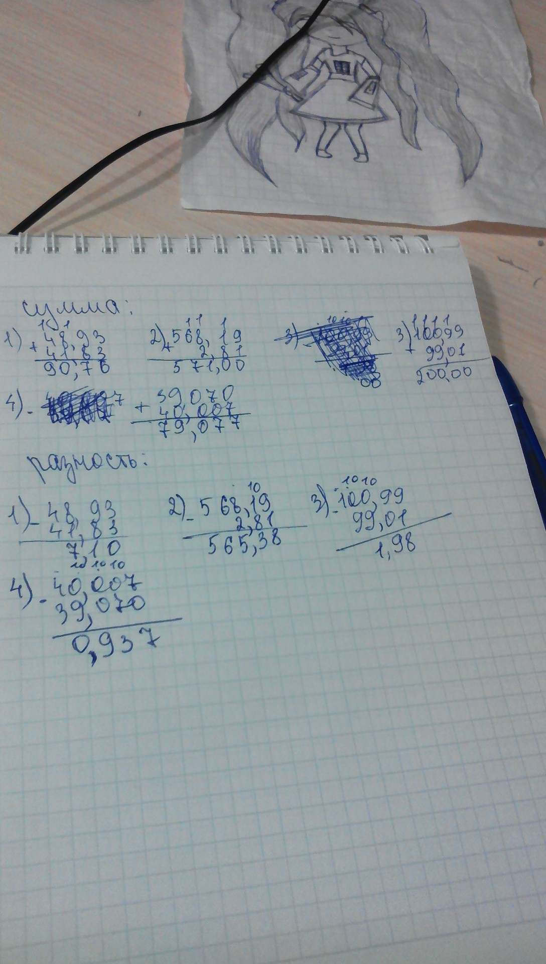 найдите значение суммы и разности разность чисел. 1)48,93и41,83 2)568,19и2,81 3)100,99и99,01 4)40,007и39,07