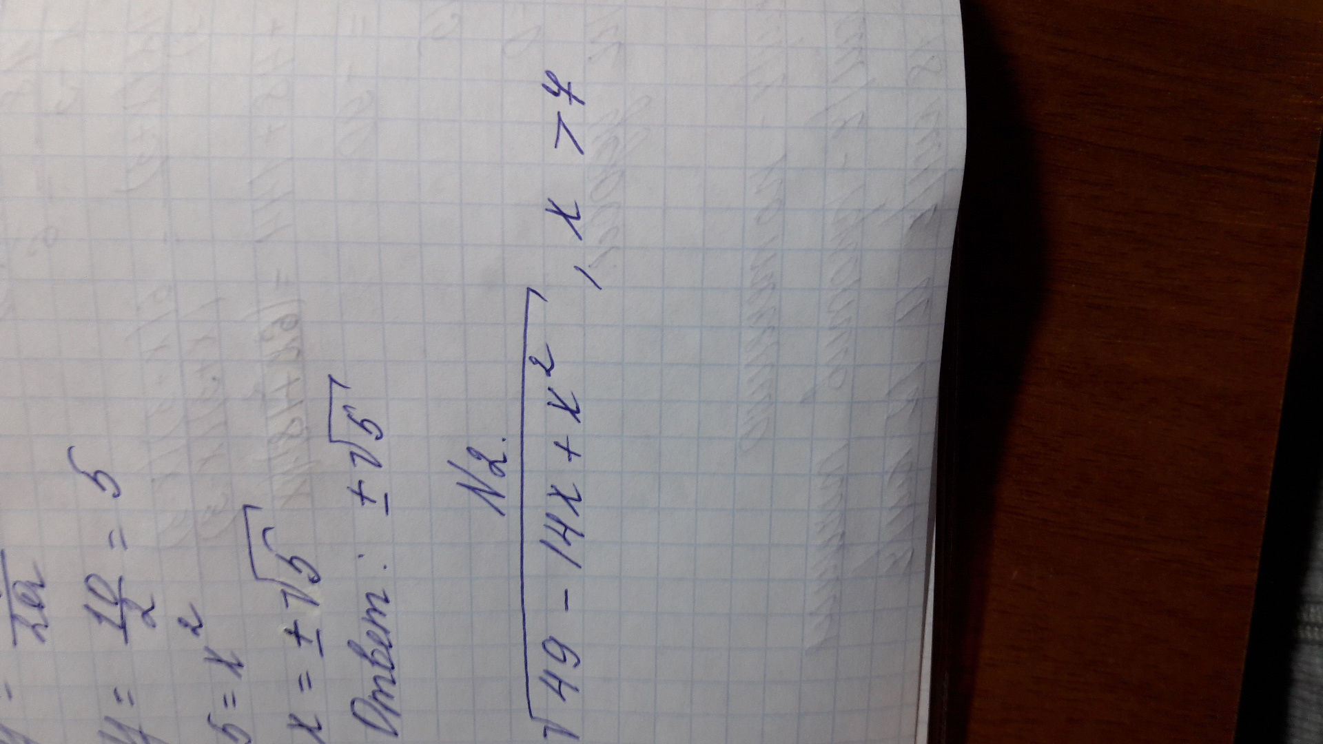 Тут получается любое число больше 7 и получится корень там только +-