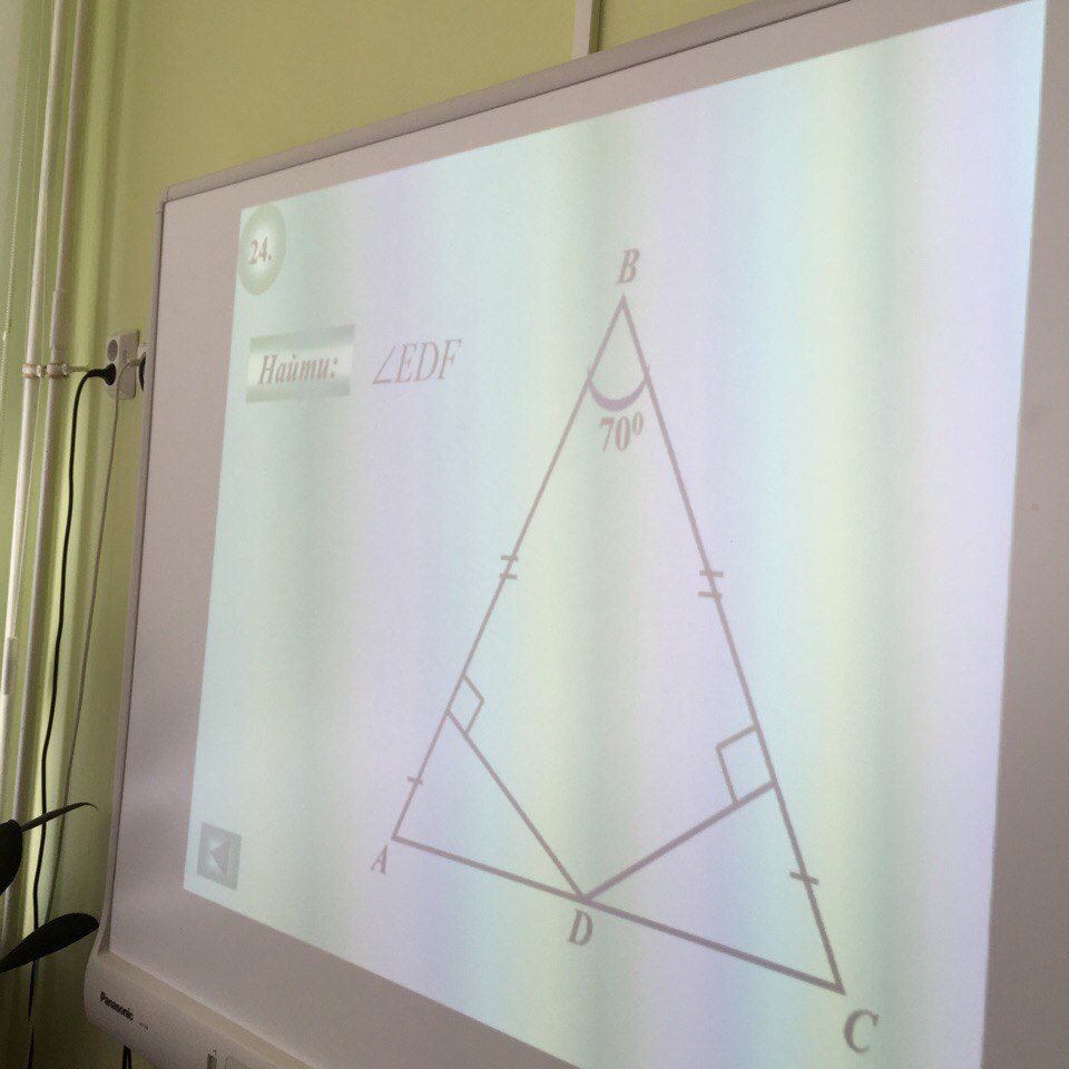 сумма углов четырехугольника ЕДFB равна 360°, тогда этот угол равен 360-(70+90+90)=360-250=110°;
