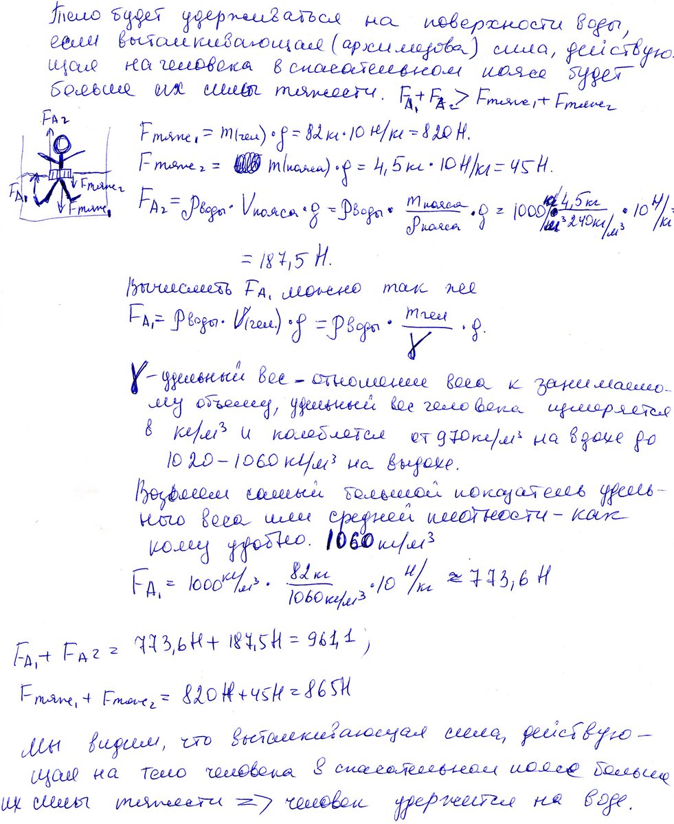 Сможет ли человек масса тела которого 82 кг держаться на воде при помощи пробкового спасательного пояса массой 4,5 кг