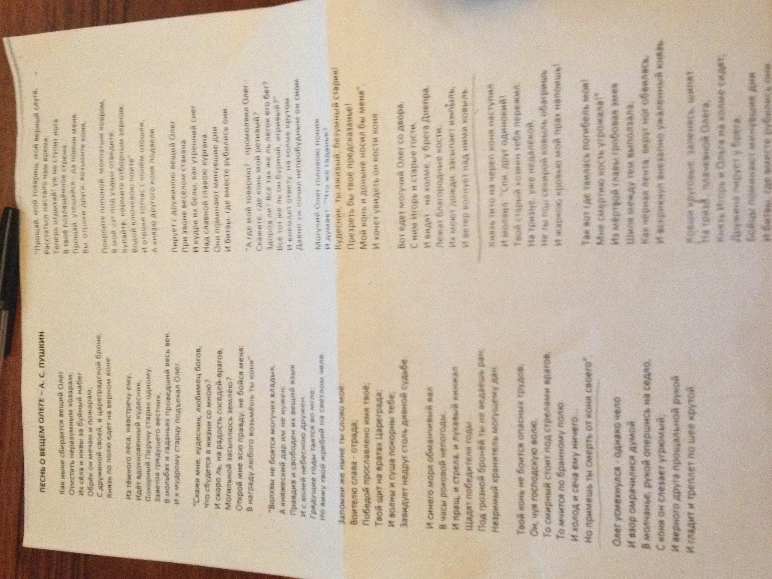 пенснь о вещеь олеге - А.С.Пушкин составить 3 пункта плана и разбить текст на три части
