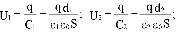 1. Во сколько раз и как изменилось напряжённость электрического поля внутри конденсатора в области без диэлектрика