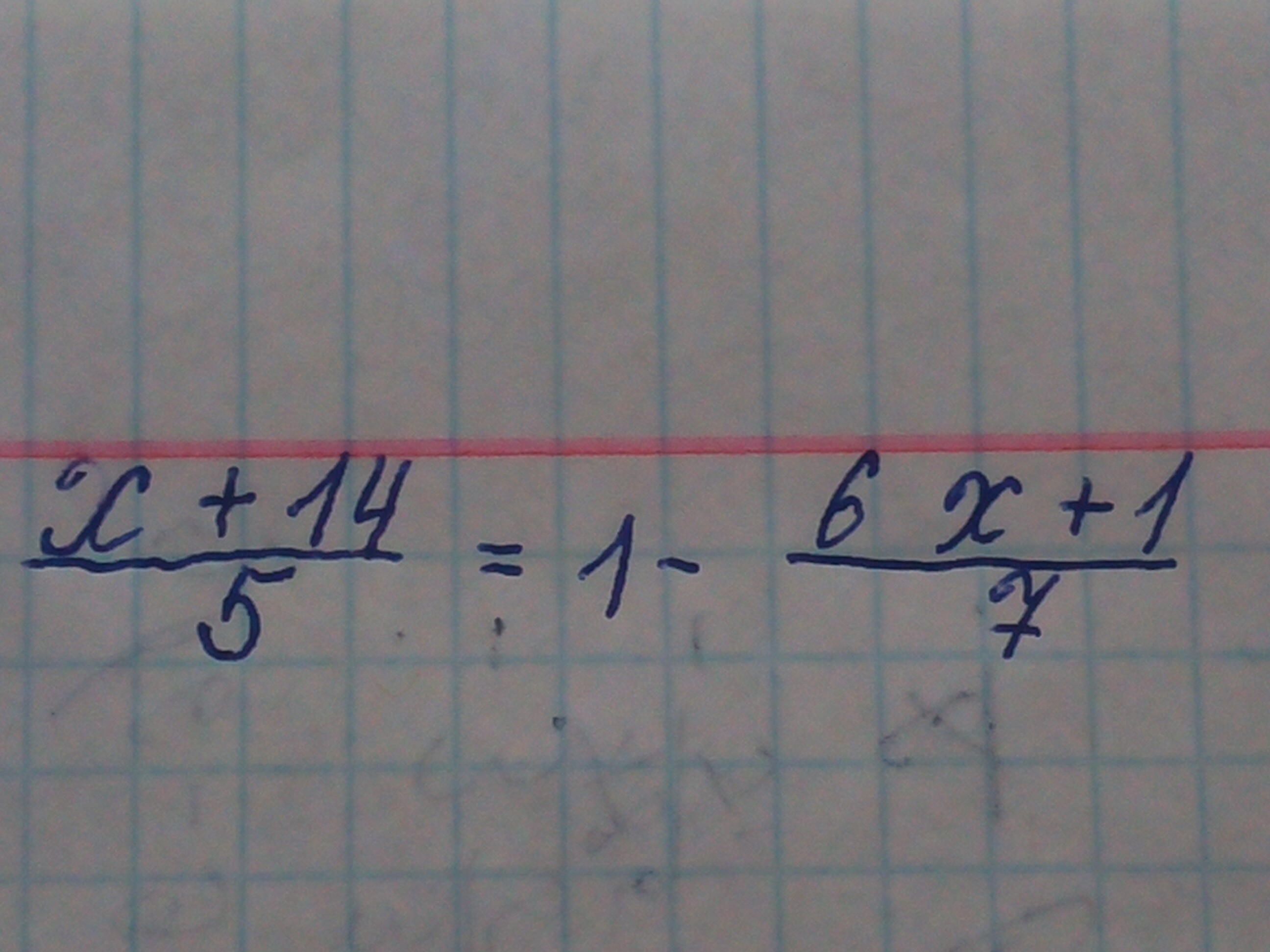 приведём н Н.О.З. Он равен 35. найдём дополнительные множители и умножим их на числители. Получим7(х+14)=35-5(6х+1)