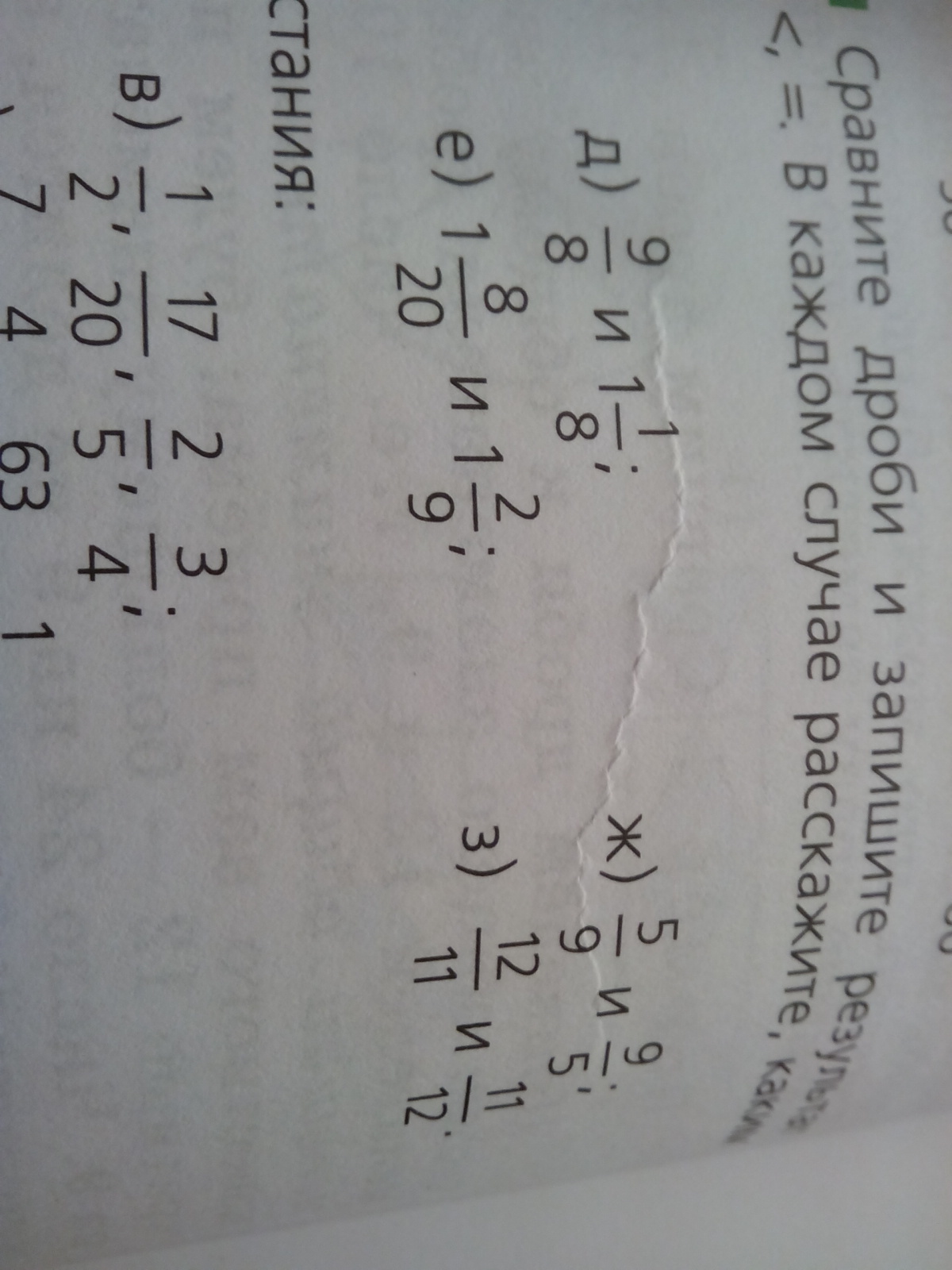 e) 1 1/20 * 9 < 1 2/9 * 20, тоже логически меньше как и в з)