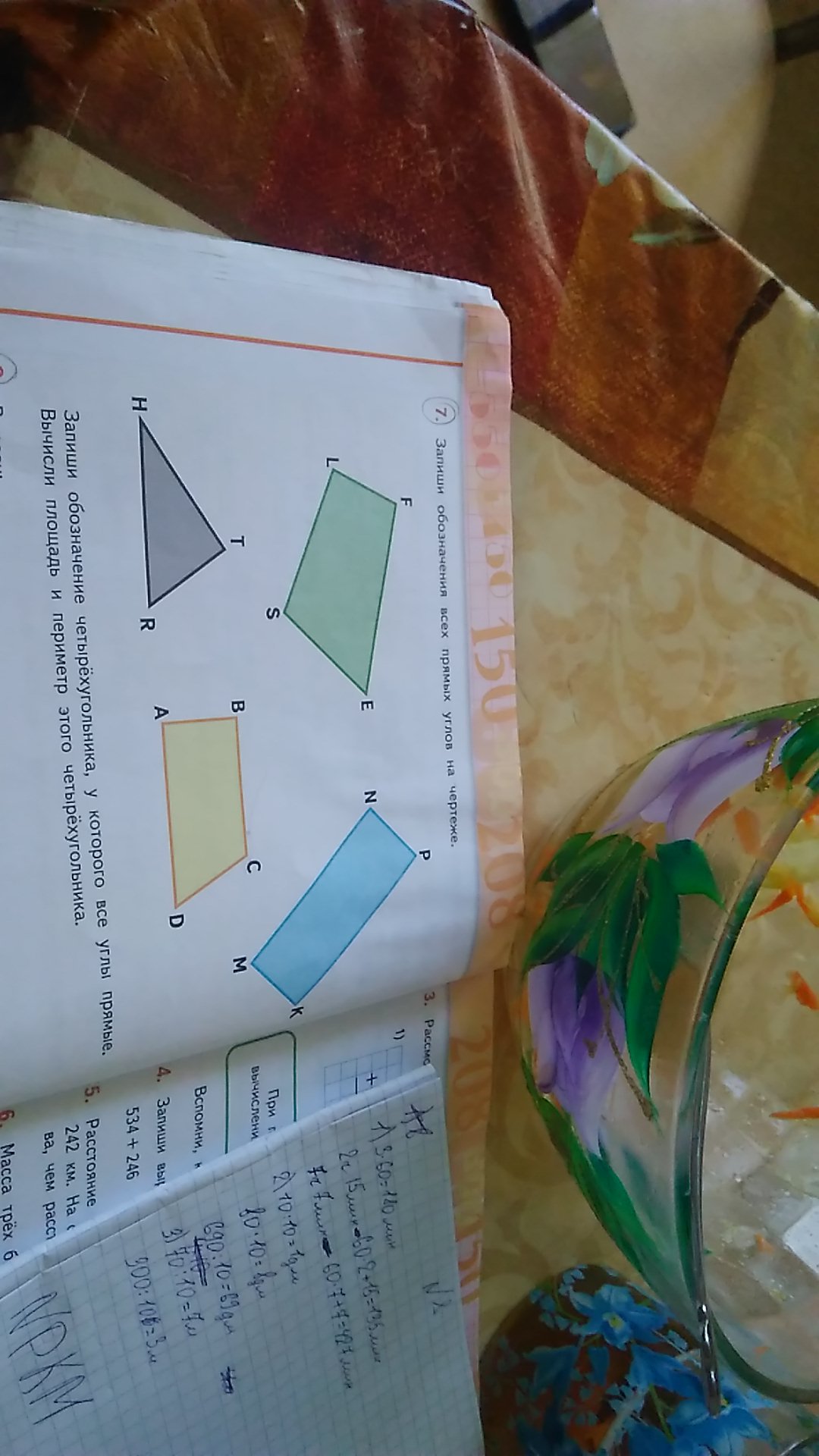 подсчитай линейкой сколько сантиметров у сторон прямоугольника нади периметр (a+b) × 2 и площадь a×b