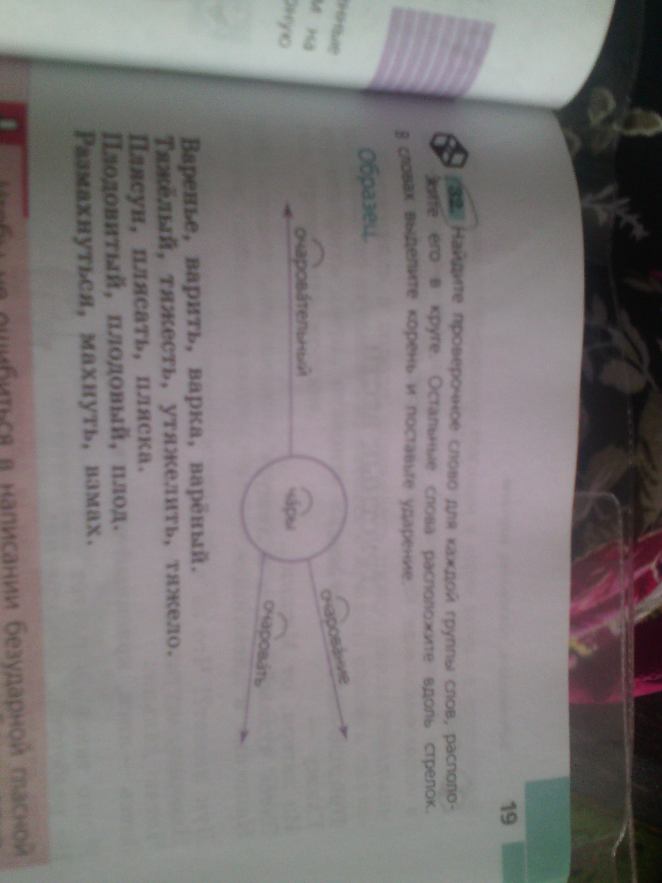 Первое слово - проверочное для группы слов,по заданию оно должно быть в круге.Каждые группы пронумерованы.