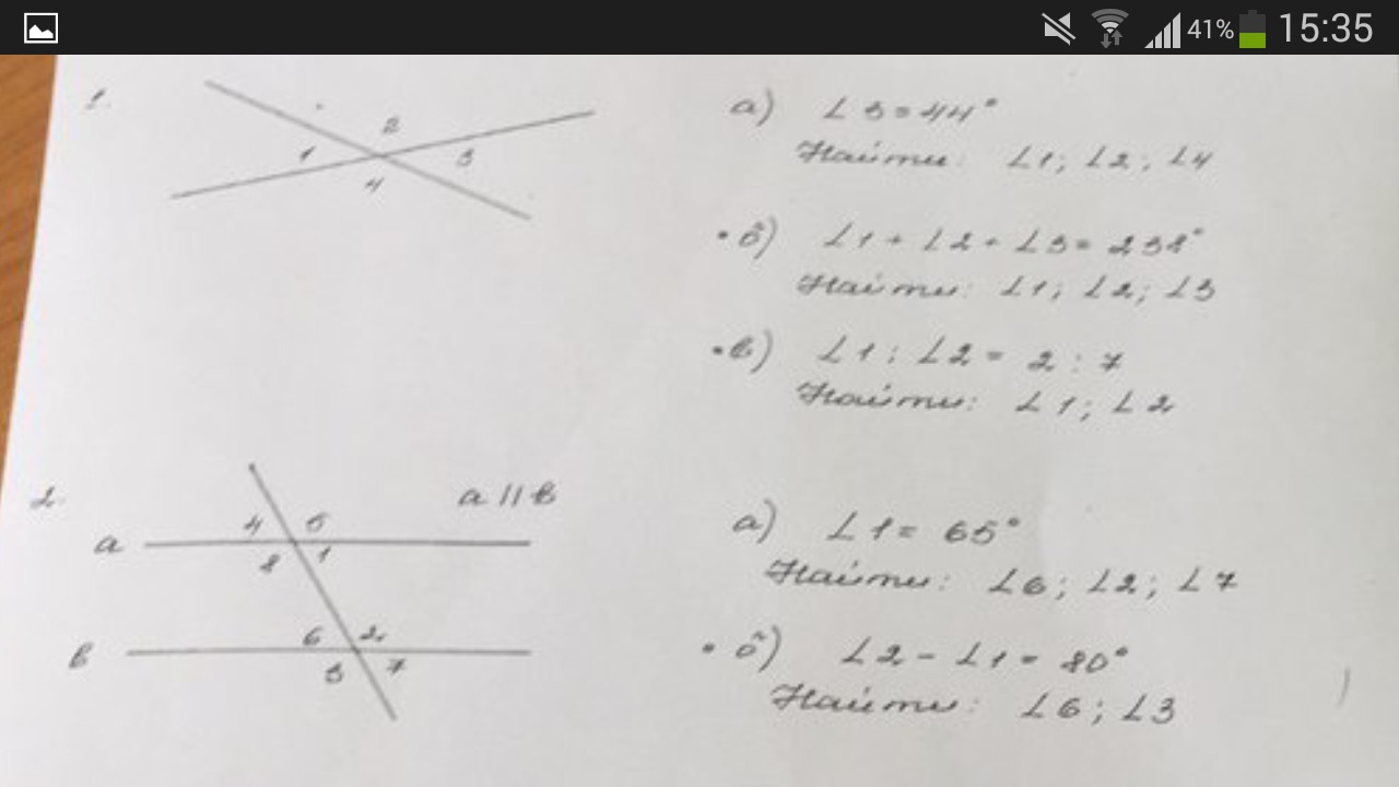 ну вот 2а точно так делать: угол 1=65 1 и 6 накрест лежащие а они равны значит 6=65, 1 и 7соответсвенные а они тоже равны 7=65