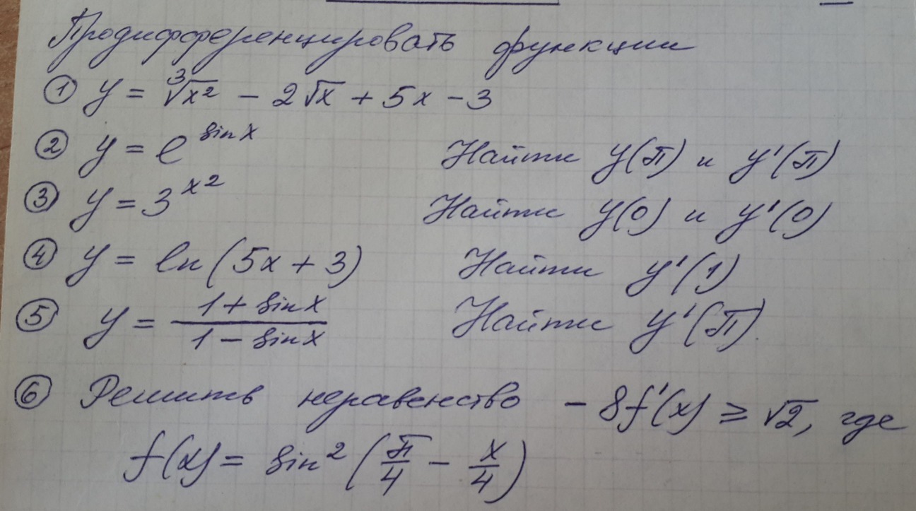 y' = (ln(5x+3))' = 1/(5x+3) *(5x+3)' = 1/(5x+3) *5 = 5/(5x+3).