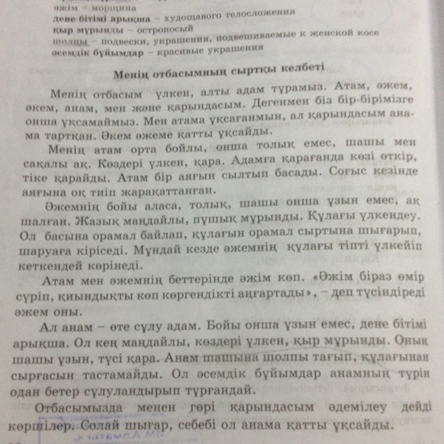Составьте пожалуйста диалог по этому тексту. Тема "менын отбасым". Пожалуйста, буду очень благодарна)