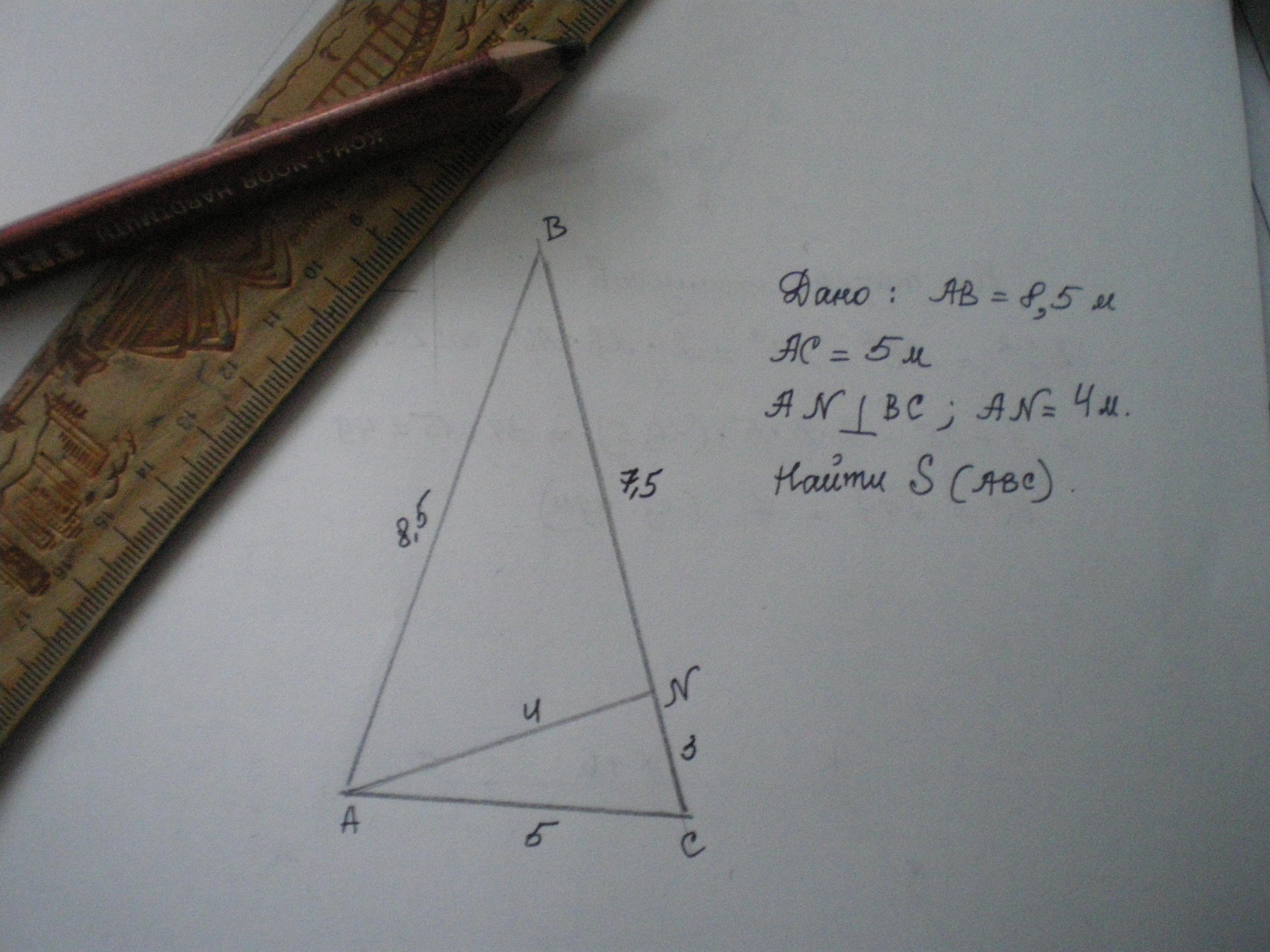 ВN² = АВ²-АN² = 8,5² - 4² = 56,25
