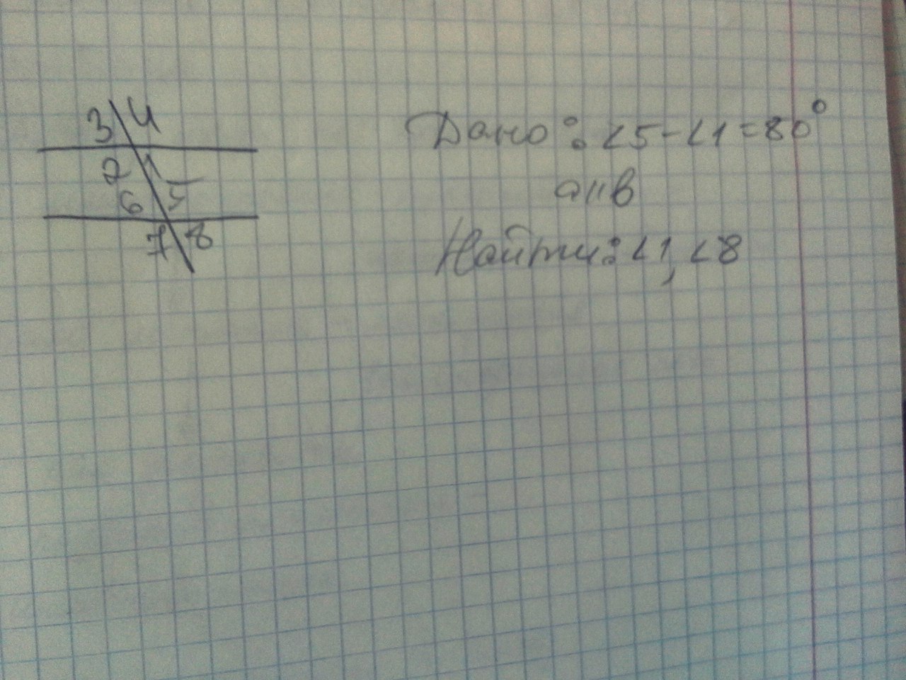 уг 8 и уг 1 равны, как соответственные; уг 8=50°;
