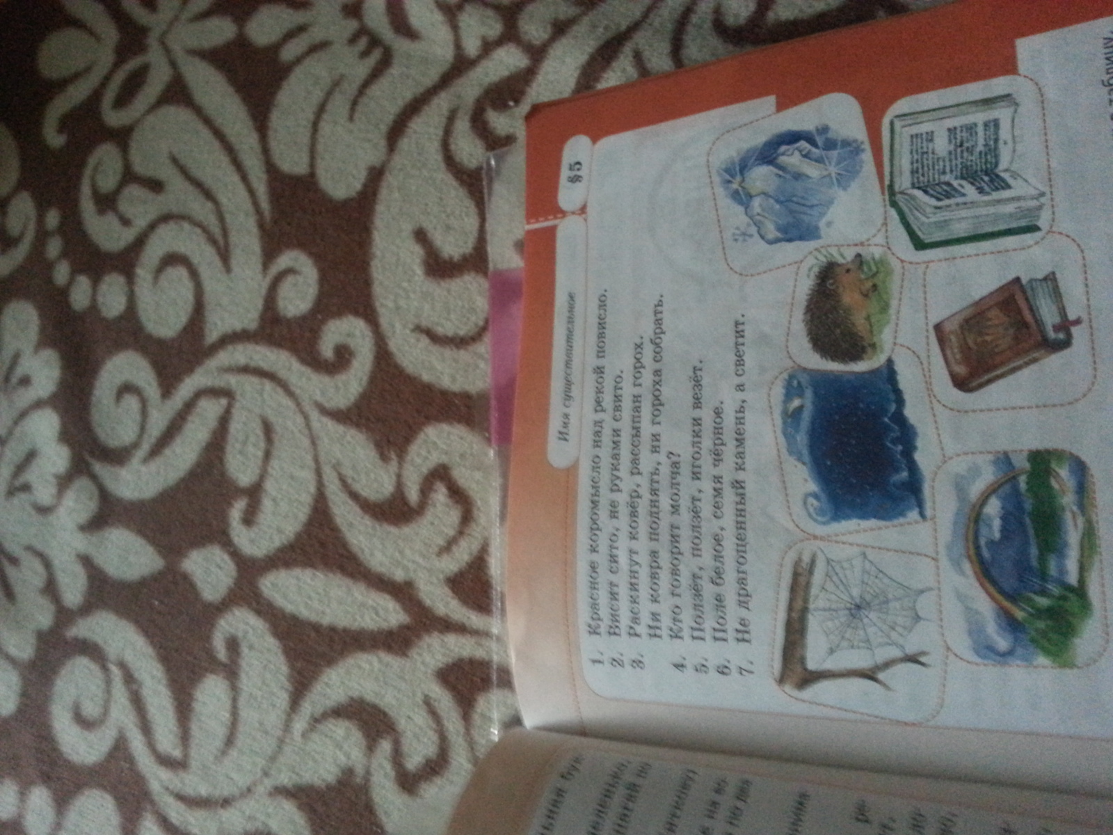 1 радуга 2 паутина 3 звездное небо 4 книга 5 еж 6 книга 7 лед