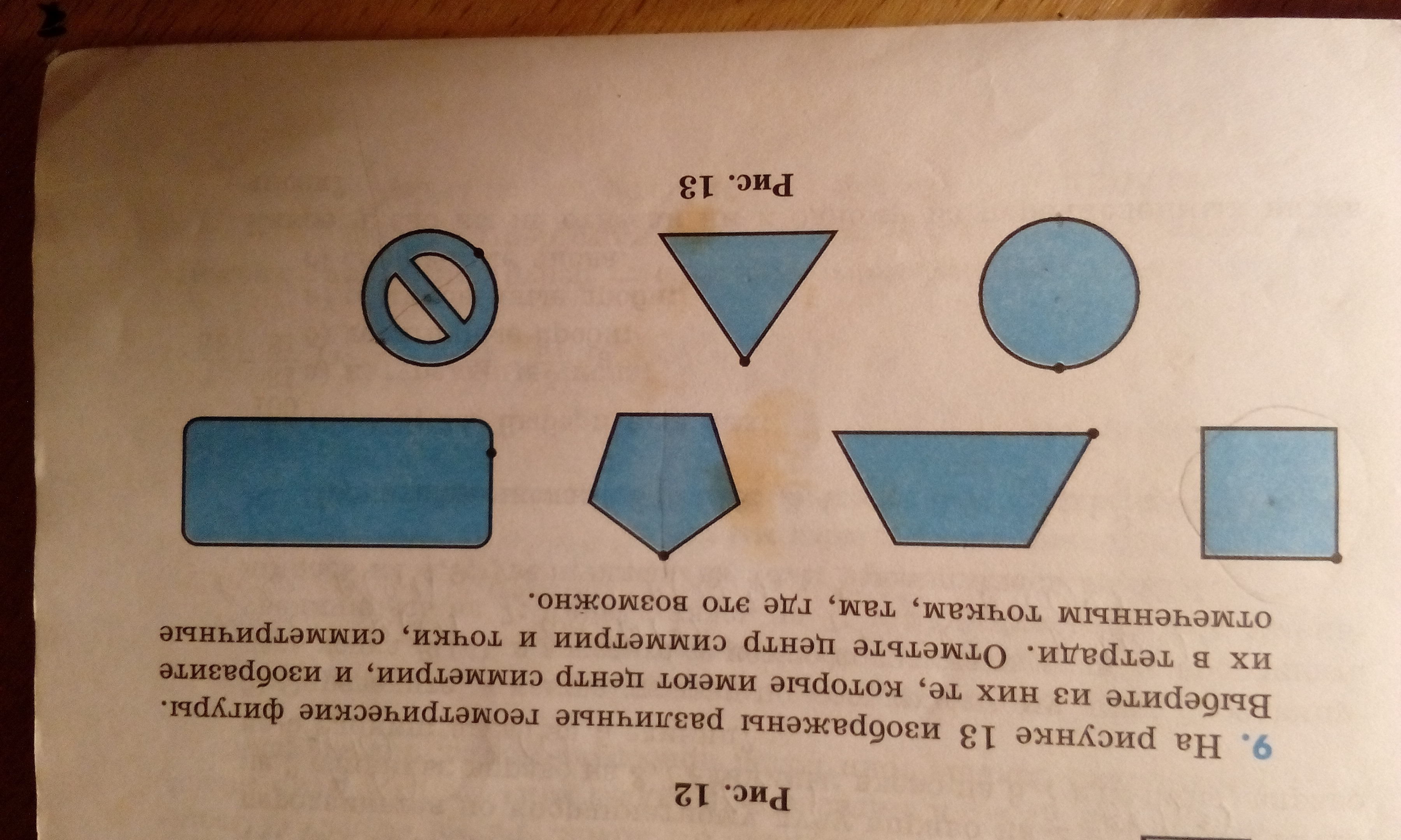 центр симметрии есть у всех, кроме трапеции и пятиугольника(там противолежащие стороны разные). Симметричные точки пройдут через центр симметрии по оси симметрии.