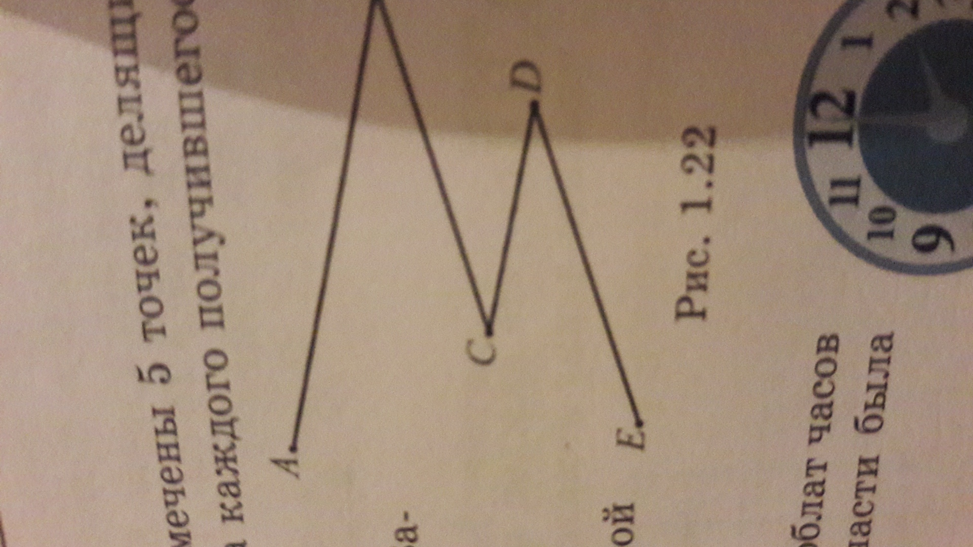 На рисунке 1.22 изображена ломаная ABCDE.Запишите : а) вершины б) звенья в) используя рисунок вычислите длину ломаный ABCDE в миллиметрах.