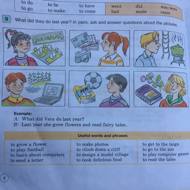 Я не знаю их имен, ты должна приписать их имена к каждому из предложений, я только совместил действия с картинкой!!