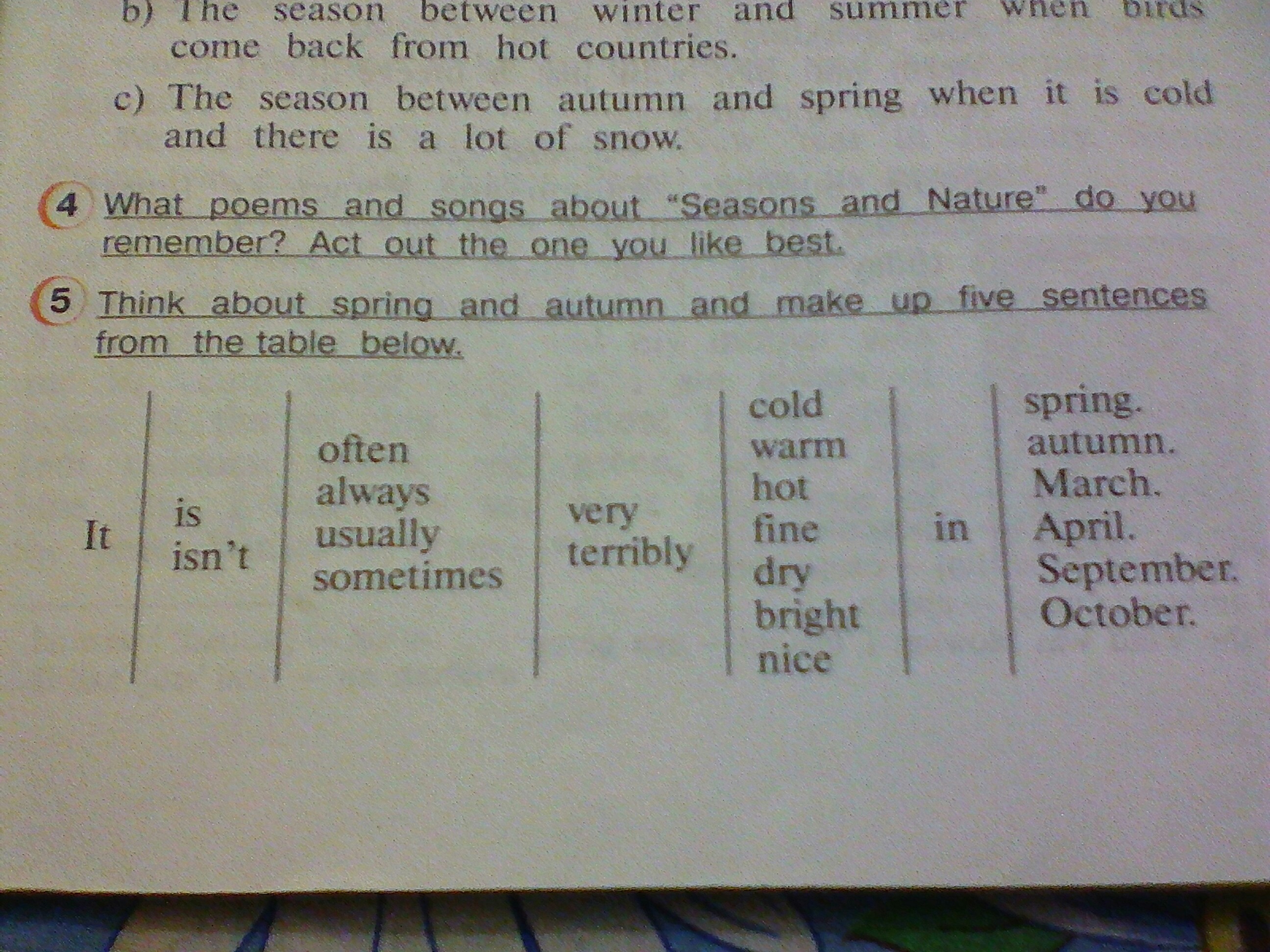 It is sometimes terribly cold in Spting.- Иногда весной ужасно холодно.