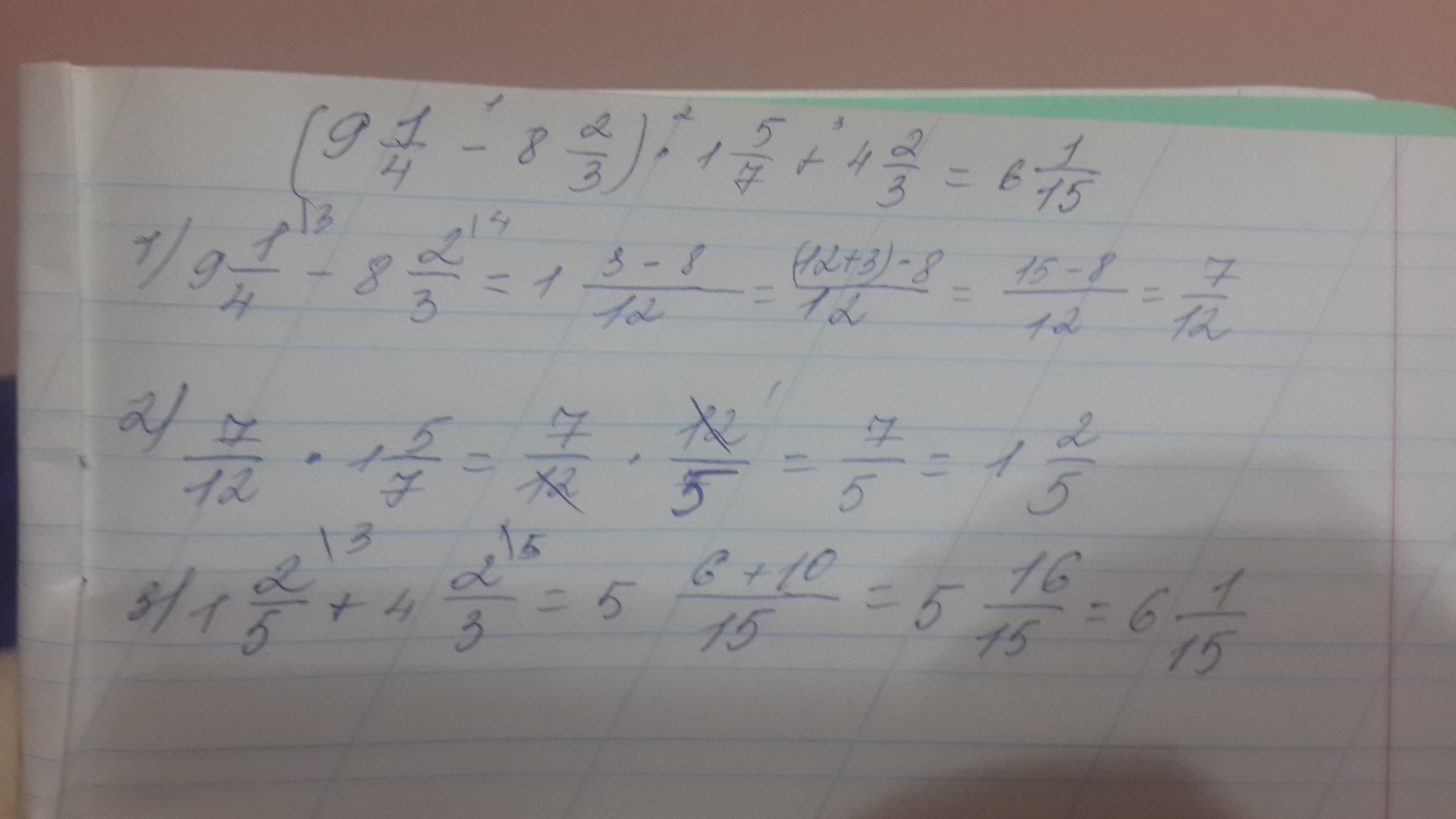 (9 целых 1/4 - 8 целых 2/3)*1 целая 5/7+4 целых 2/3 пожалуйста можете всё расписать заранее спасибо)))