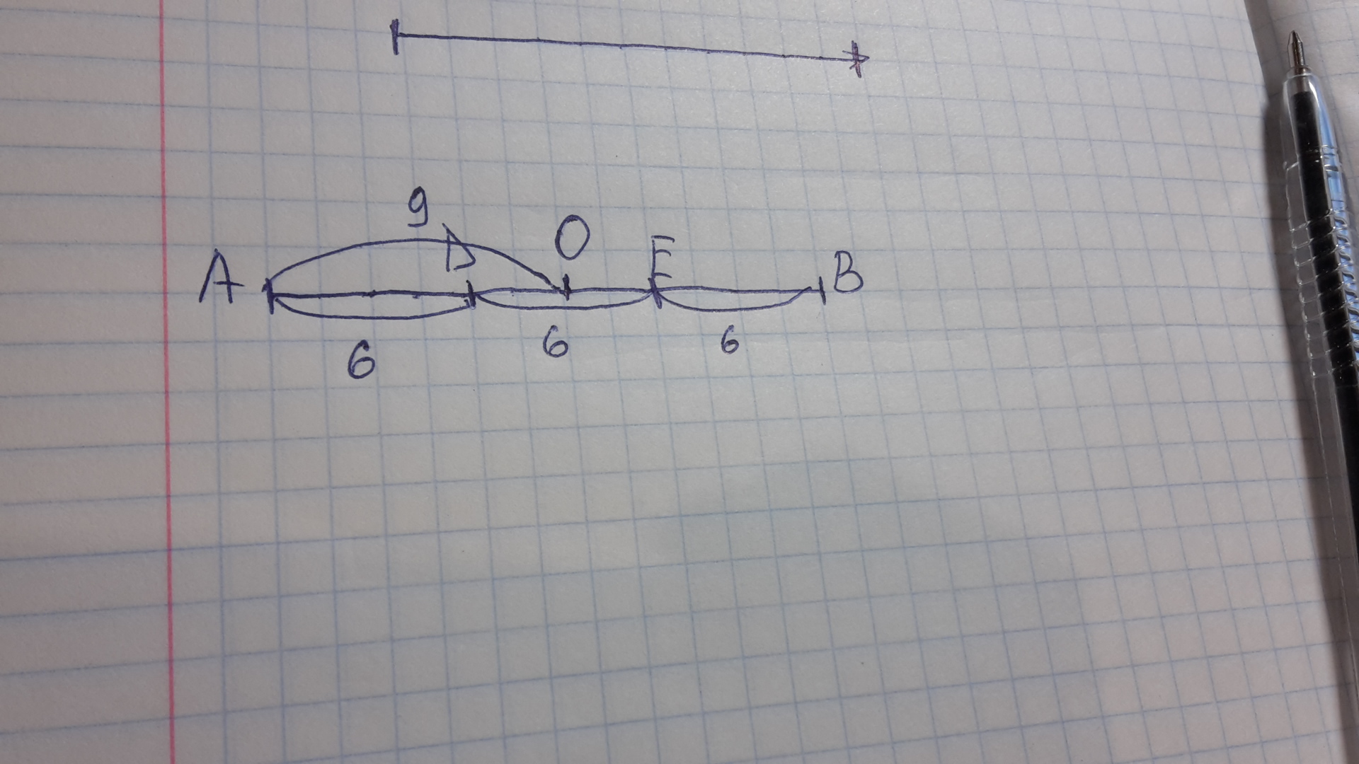 Длина отрезка AВ равна 18 см.Точки D и E делят отрезок АВ на три равные части.На середине отрезка АВ отмечена точка O.Найдите длину отрезка OE.