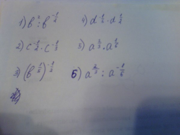 6) a^(2/3) : a^(-1/6) = a^(2/3-(-1/6)) = a^(2/3+1/6) = a^(5/6)