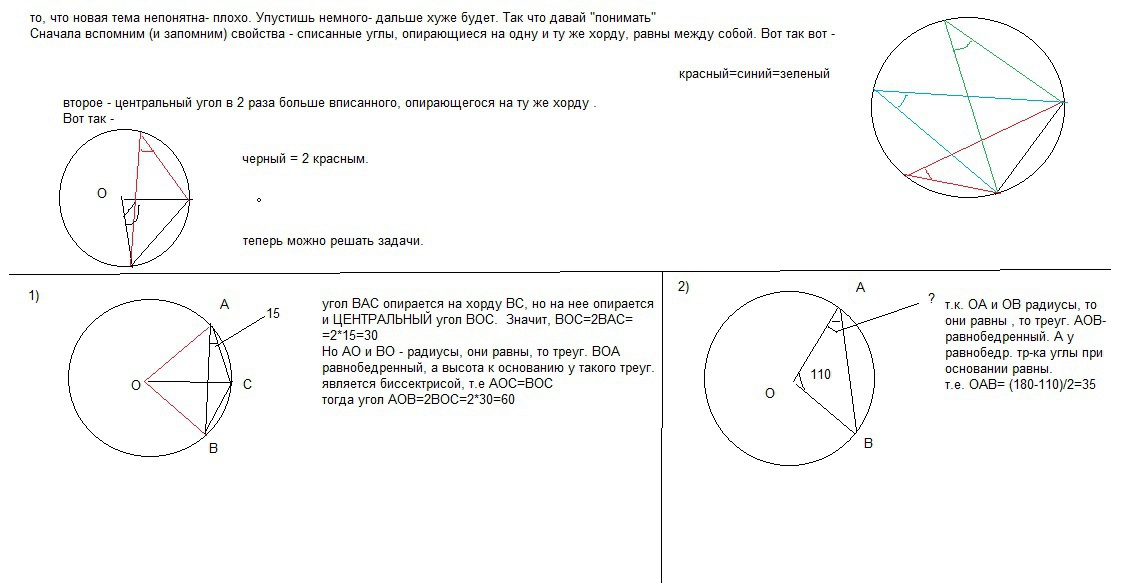 Дана окр-ти, радиус ОС который перпедикулярен хорде АВ. Найти угол AOB,если угол ВАС=15 градусов