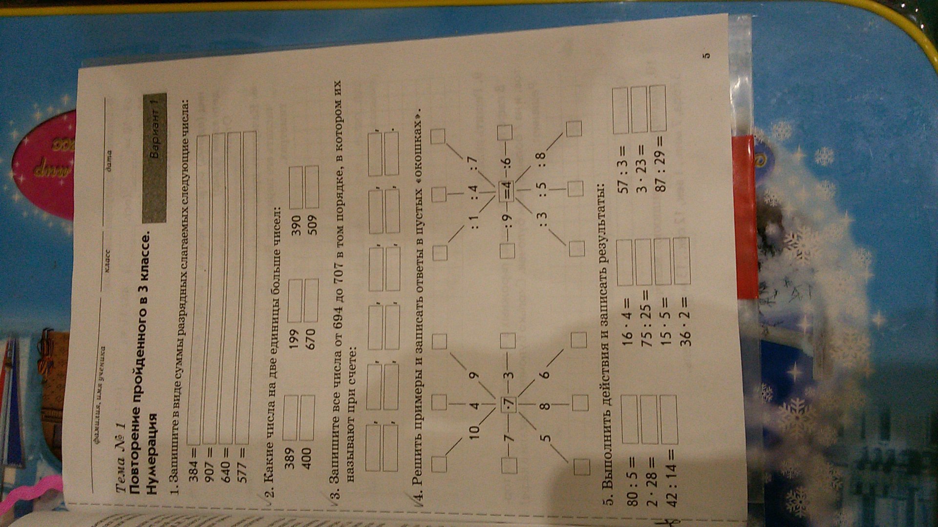 4) в первой снежинке в клетках вставляются сумма при умножение на 7. То есть 70=10×7 и так далее