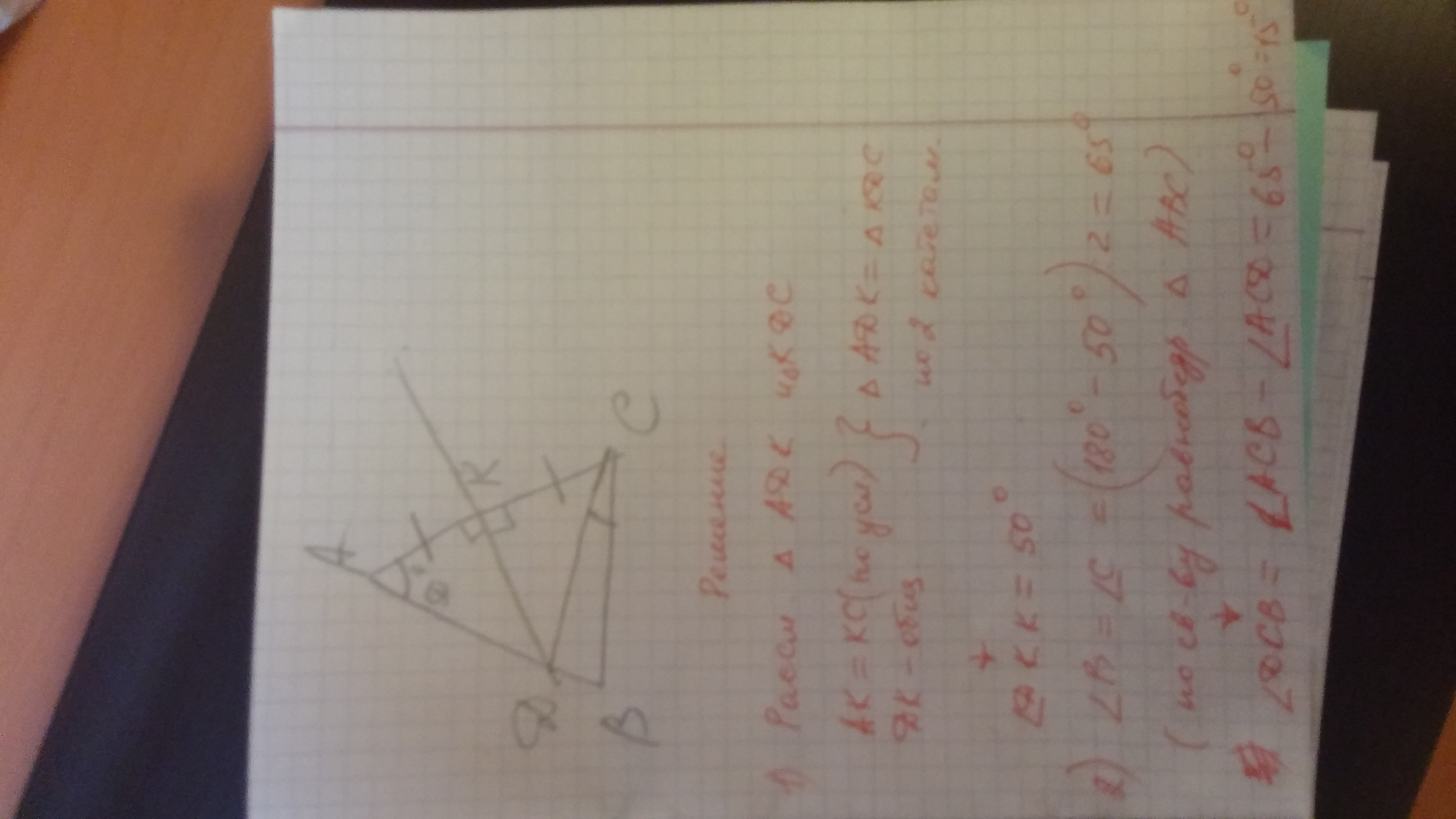 Помогите пожалуйста с геометрией. В равнобедренном треугольнике АВС с основанием ВС угол А=50 градусов. К его стороне АС проведен серединный перпендикуляр, пересекающий сторону АВ в точке D. Найдите угол DCB? Пожалууйста)) Заранее спасибо))