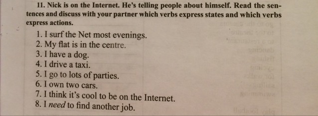 State verbs: have, think, need, own, is