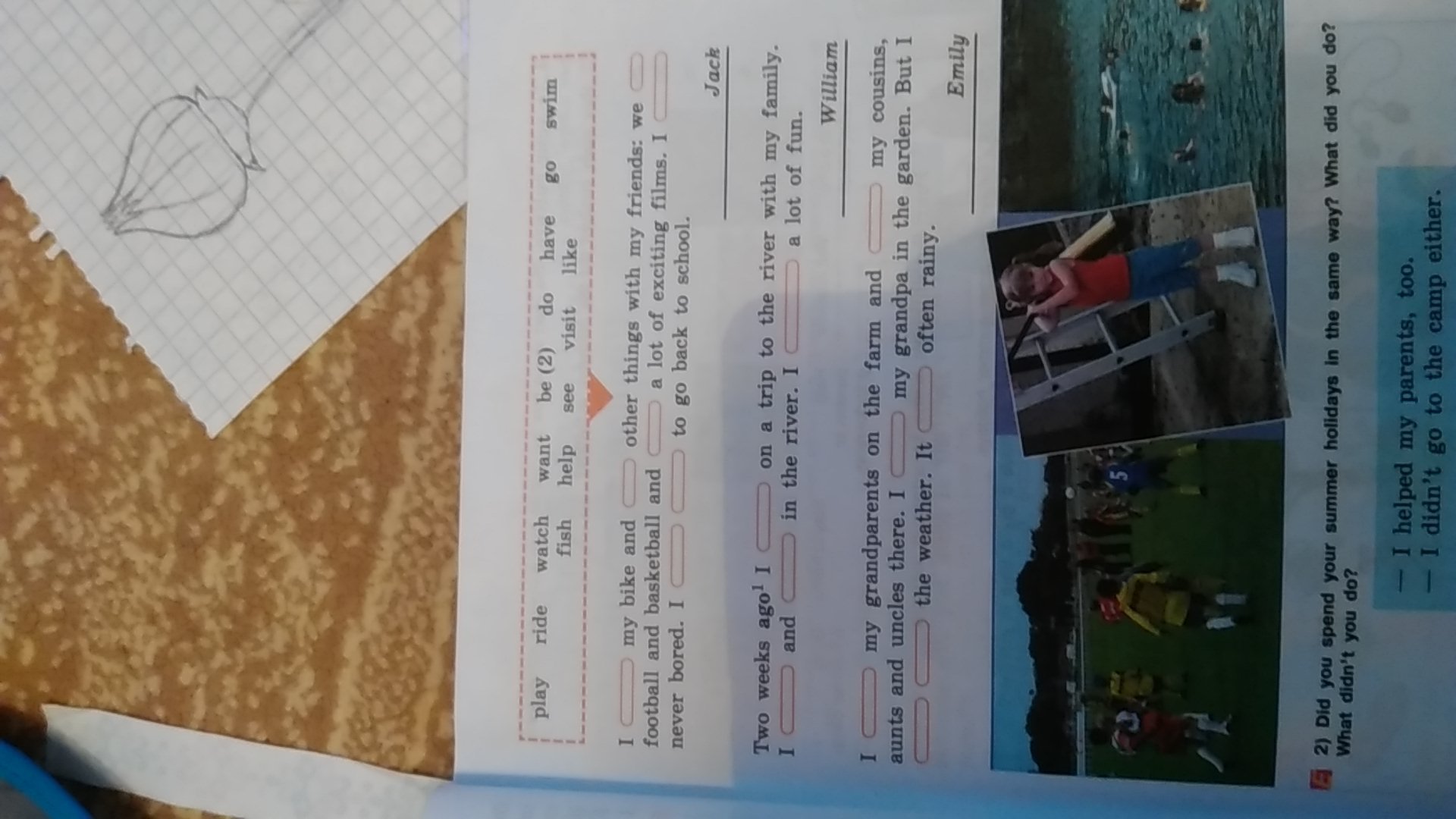 rode, did, played, watched, was, didn't want.