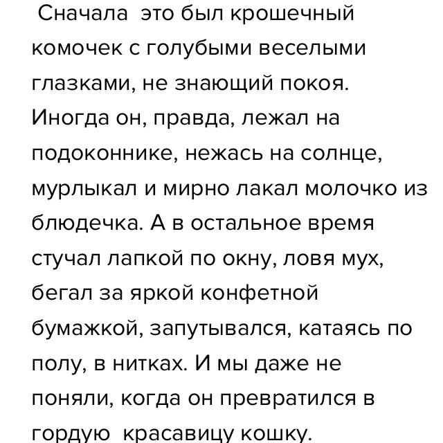 Название:Котенок вырос.Тема :Как из маленького котёнка выросла кошка.Главная мысль:Котёнок вырос незаметно для всех.