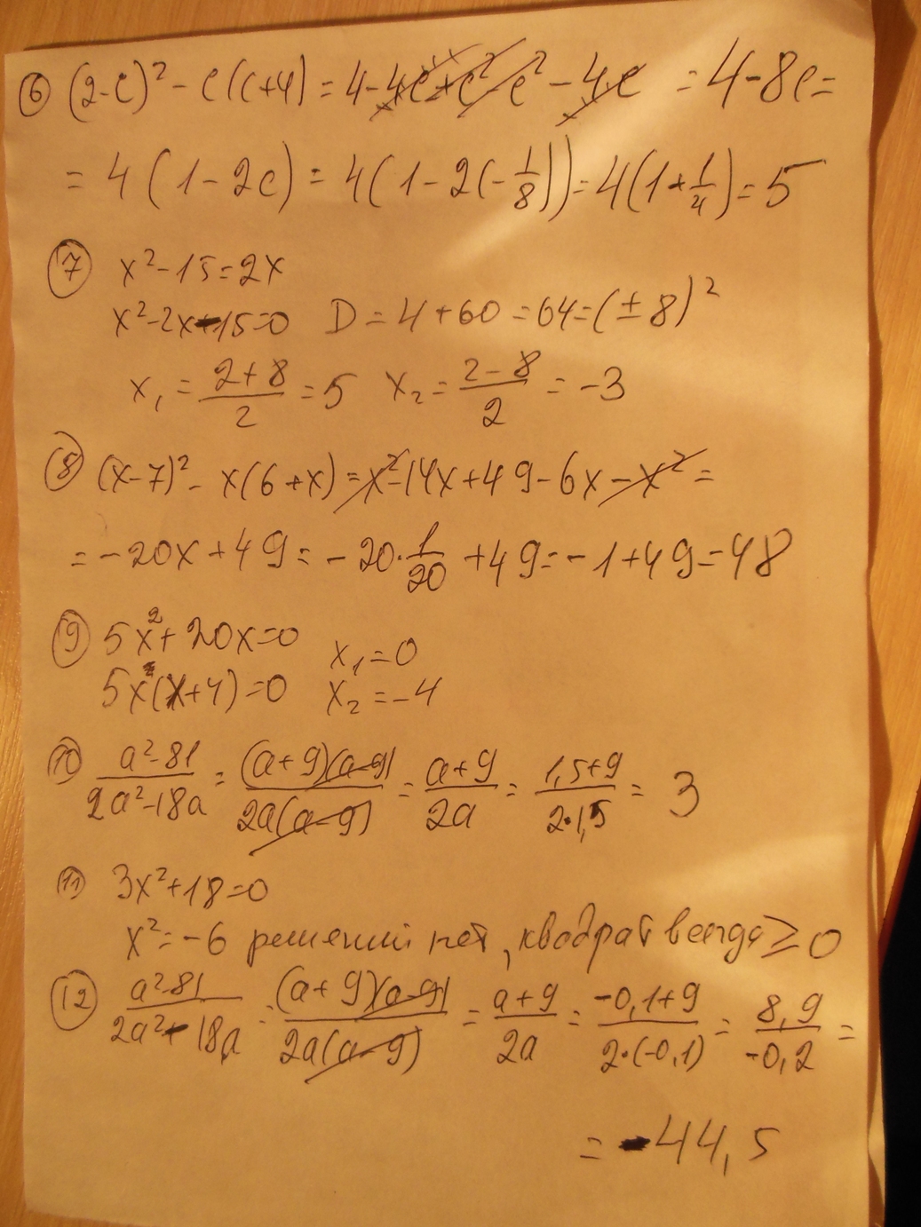 зеленые номера это найдите значение выражения,а белые это уравнения