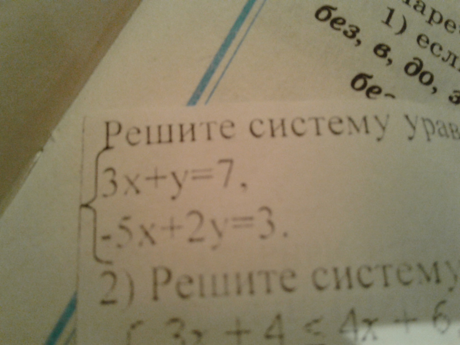 3х+у=7 у=7-3х -5х+2у=3 -5х+2у=3