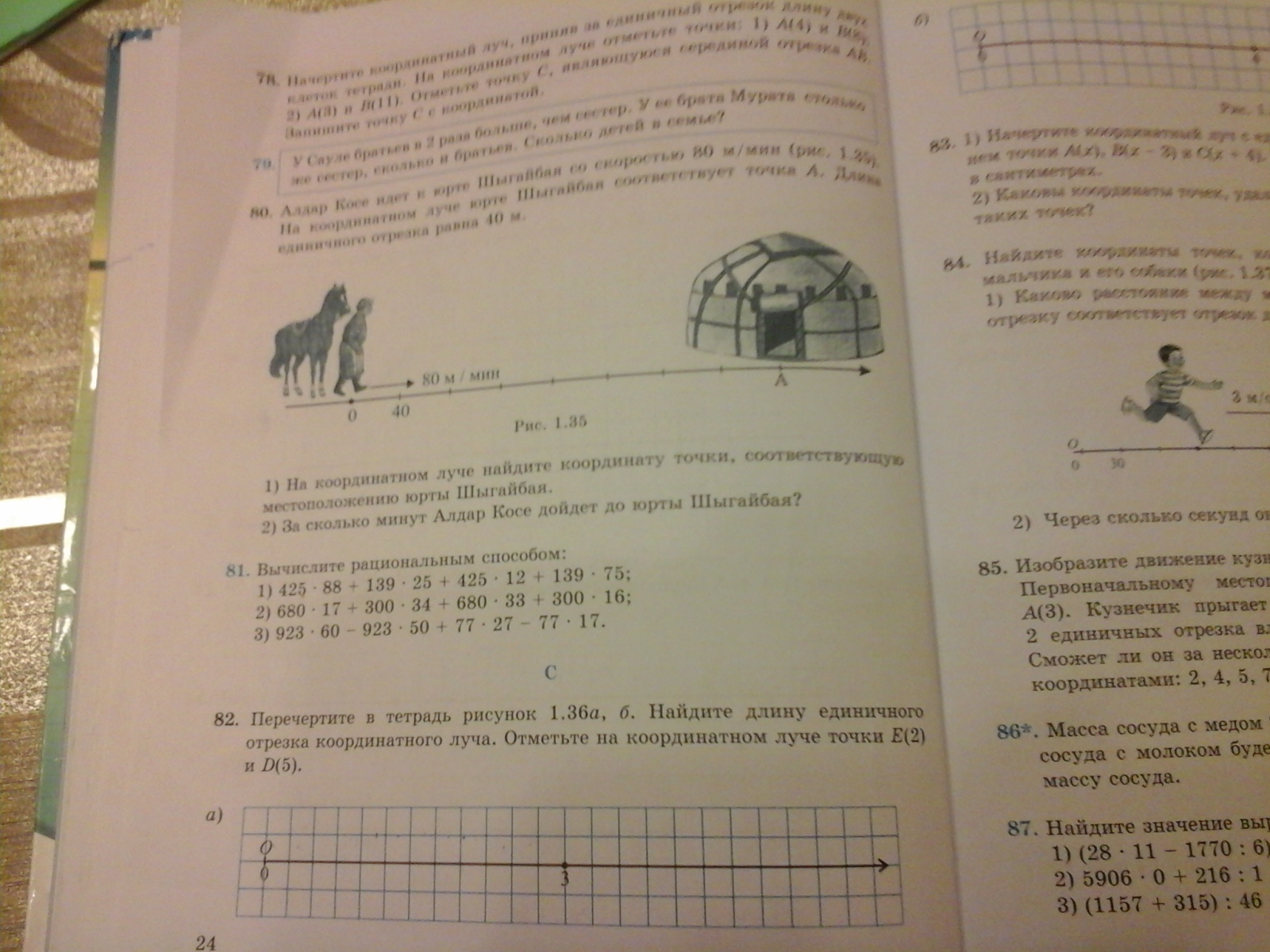 Алдар косе идет к юрте шагайбая со скоростью 80 м/мин (рис 1.35) на координатной луче юрте шагайбая соответствует точка А Длина единичного отрезка равна 40 м