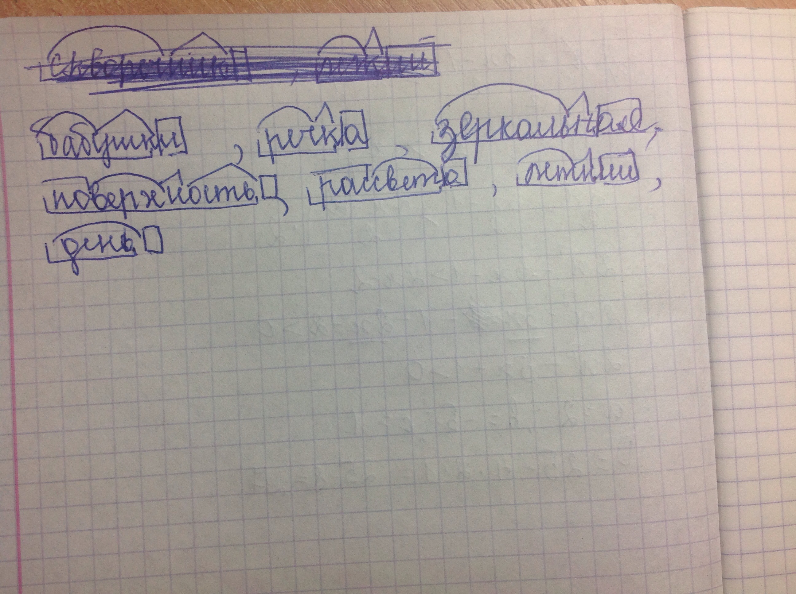 Прочитай текст.Вставь пропущенные буквы.Вспомни алгоритм разбора слов по составу.Разбери по составу подчеркнутые слова.Бабушки,речка,зеркальная,поверхность,рассвета,летний ,день.