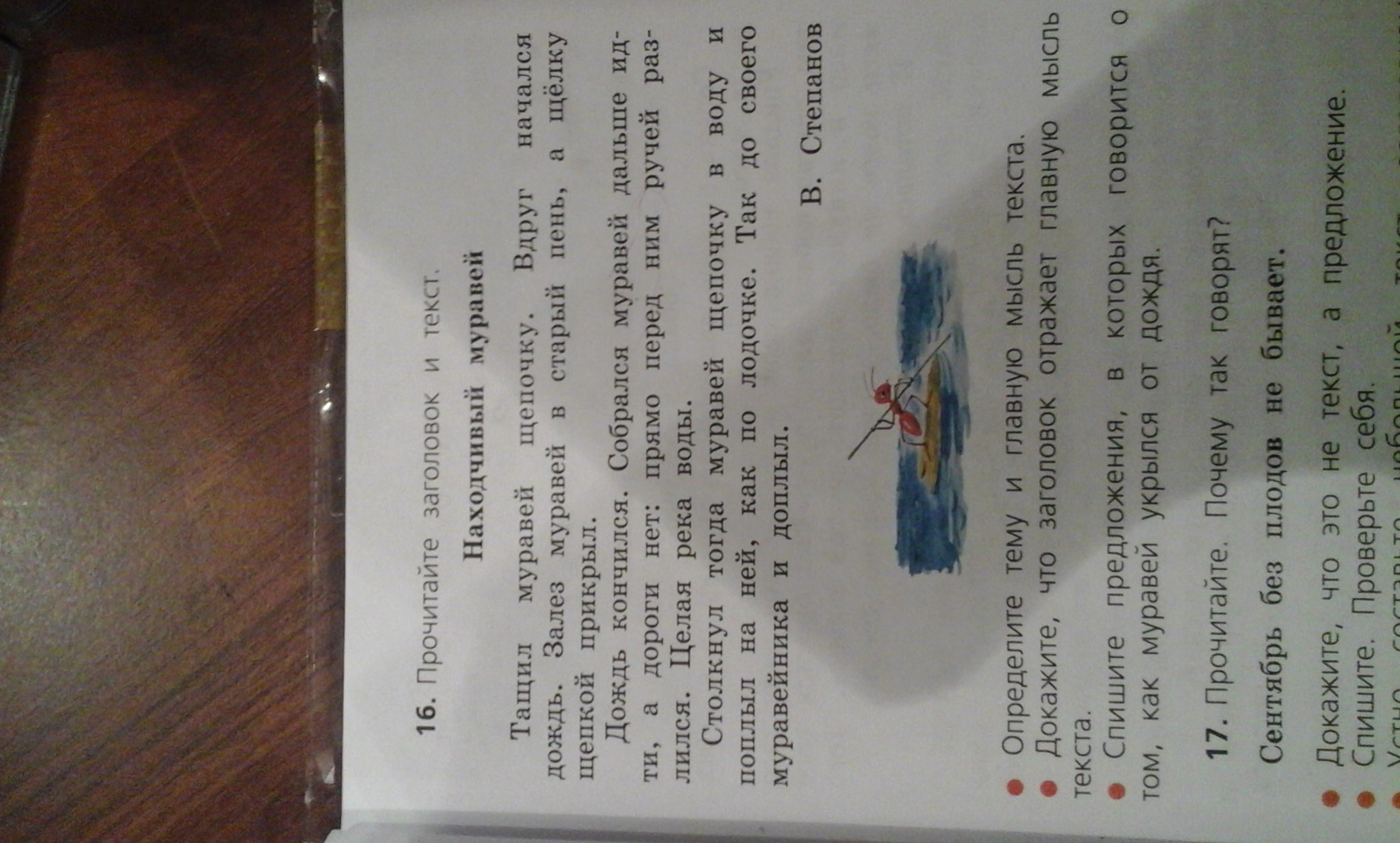 2)Находчивость муравья проявляется в том что из подручных средств он выбрался из тяжелого полажения