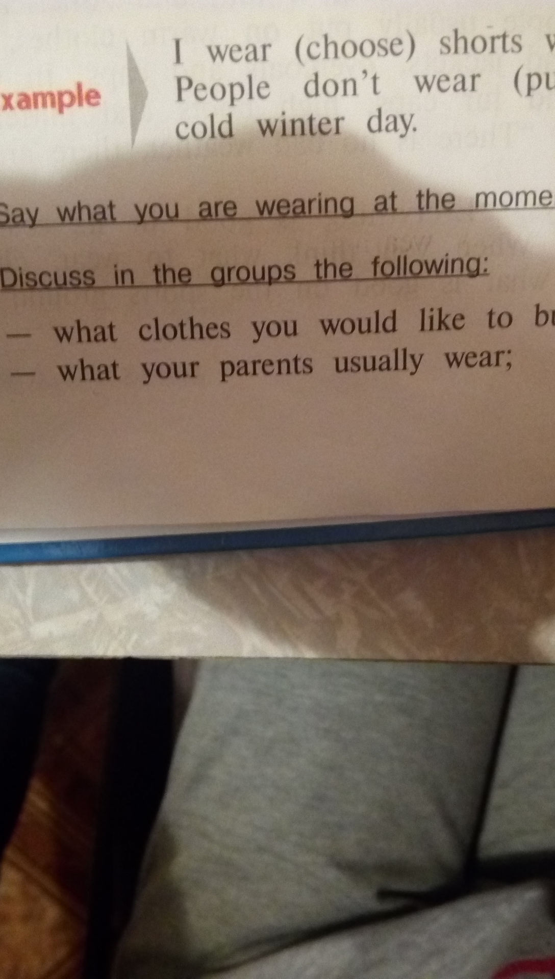 говорят, что вы носите в данный момент Обсудите в группах следующие: какую одежду хотел бы б вам, что ваши родители обычно носят;